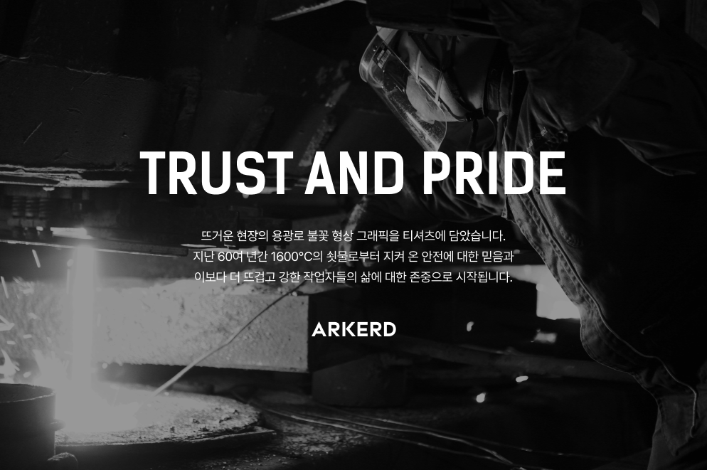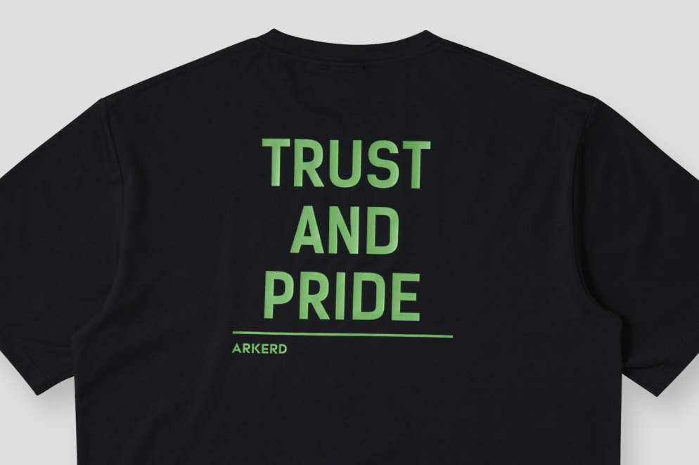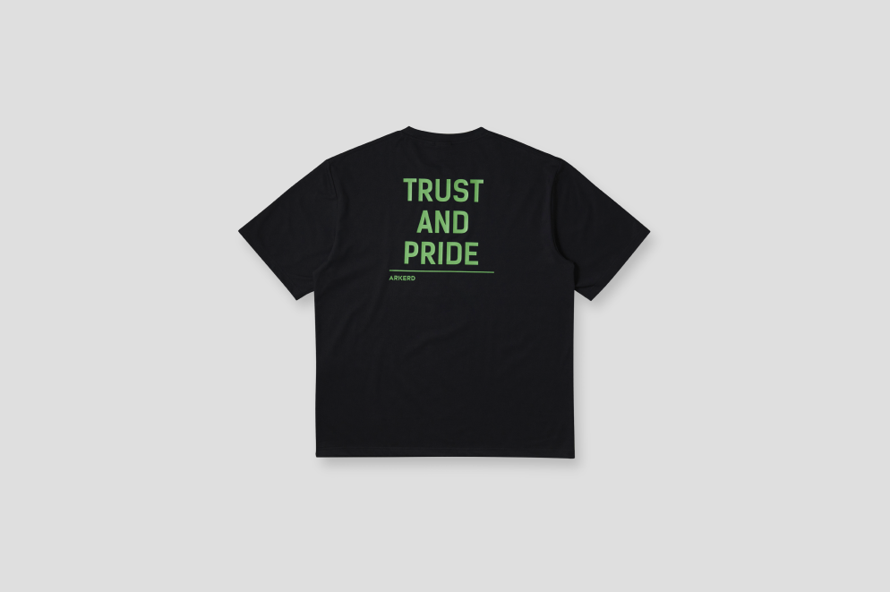후면 : ARKERD 슬로건 ‘TRUST AND PRIDE’ 그래픽 프린트