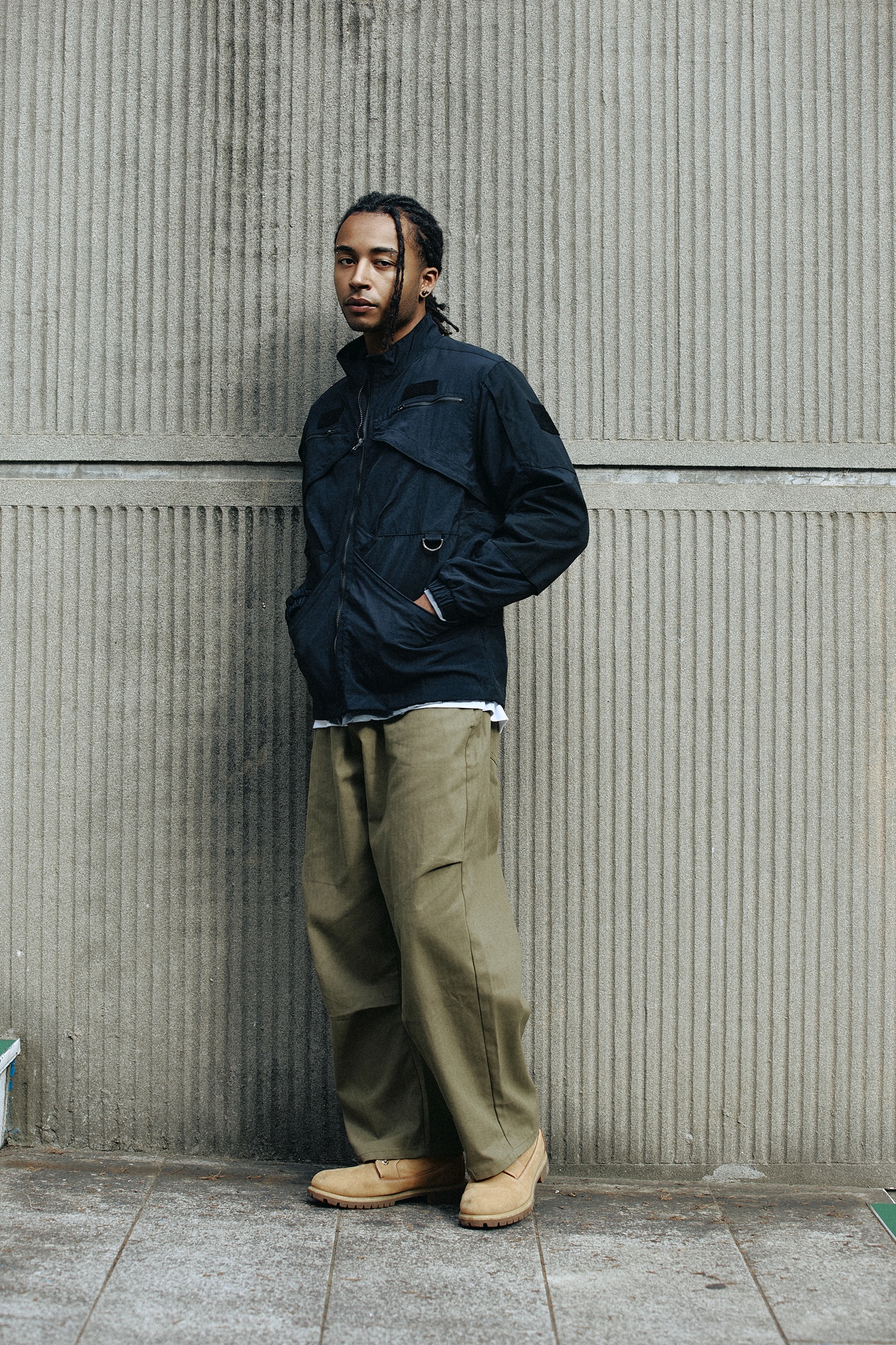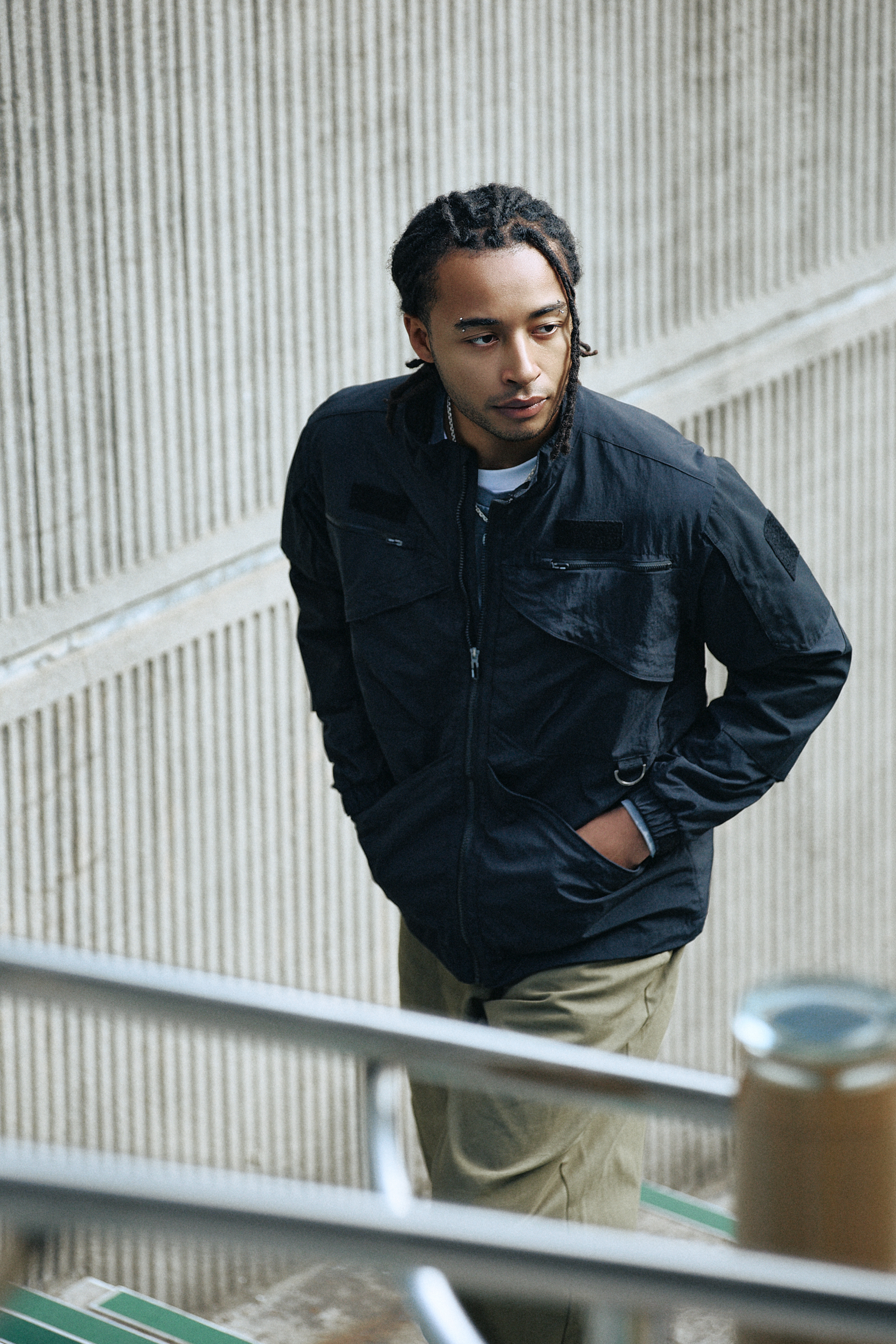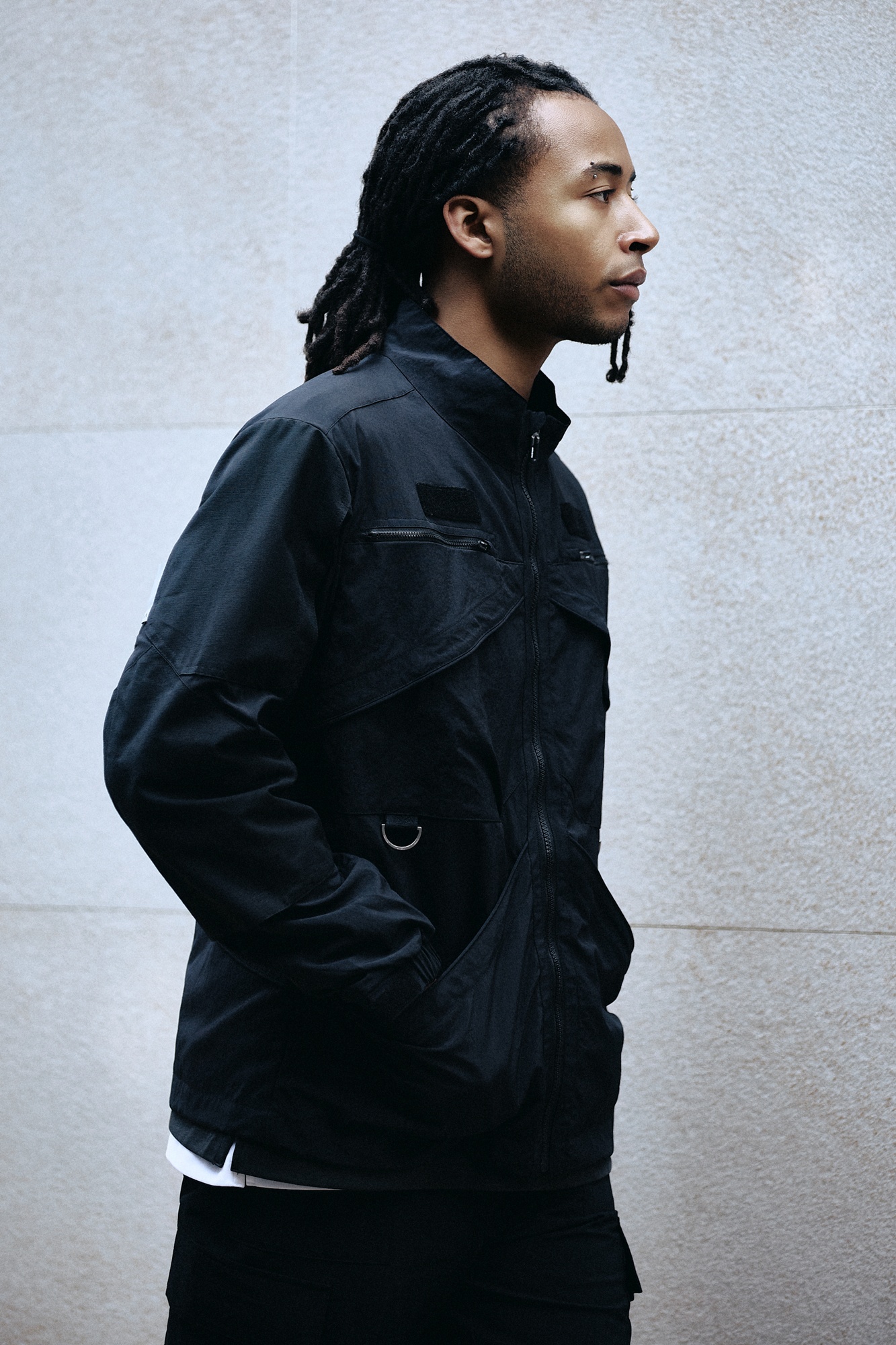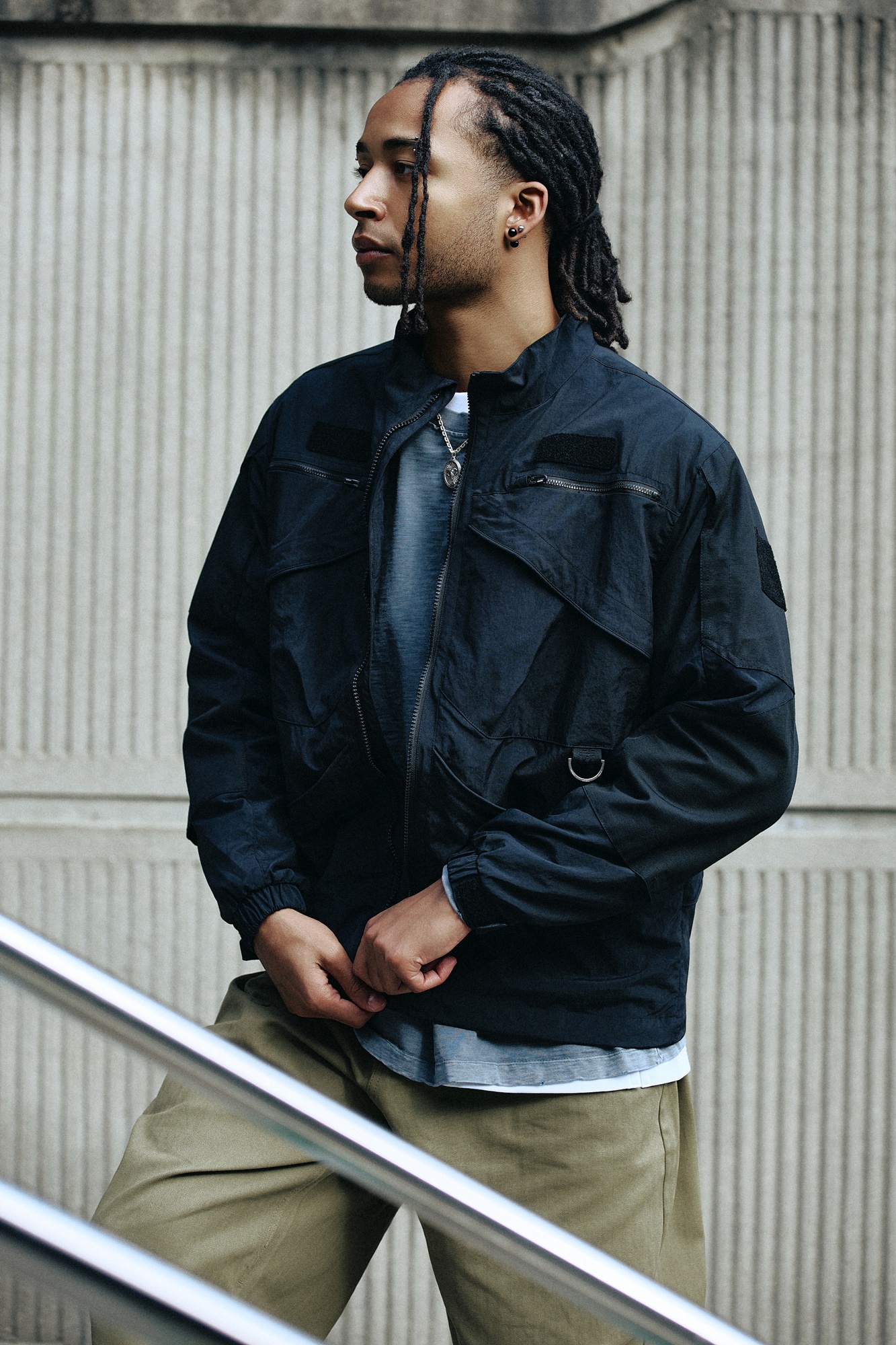 실제 현장에서 사용되는 워크웨어를 일상복으로 재해석한 워크자켓으로, 전후면 9개의 포켓이 있어